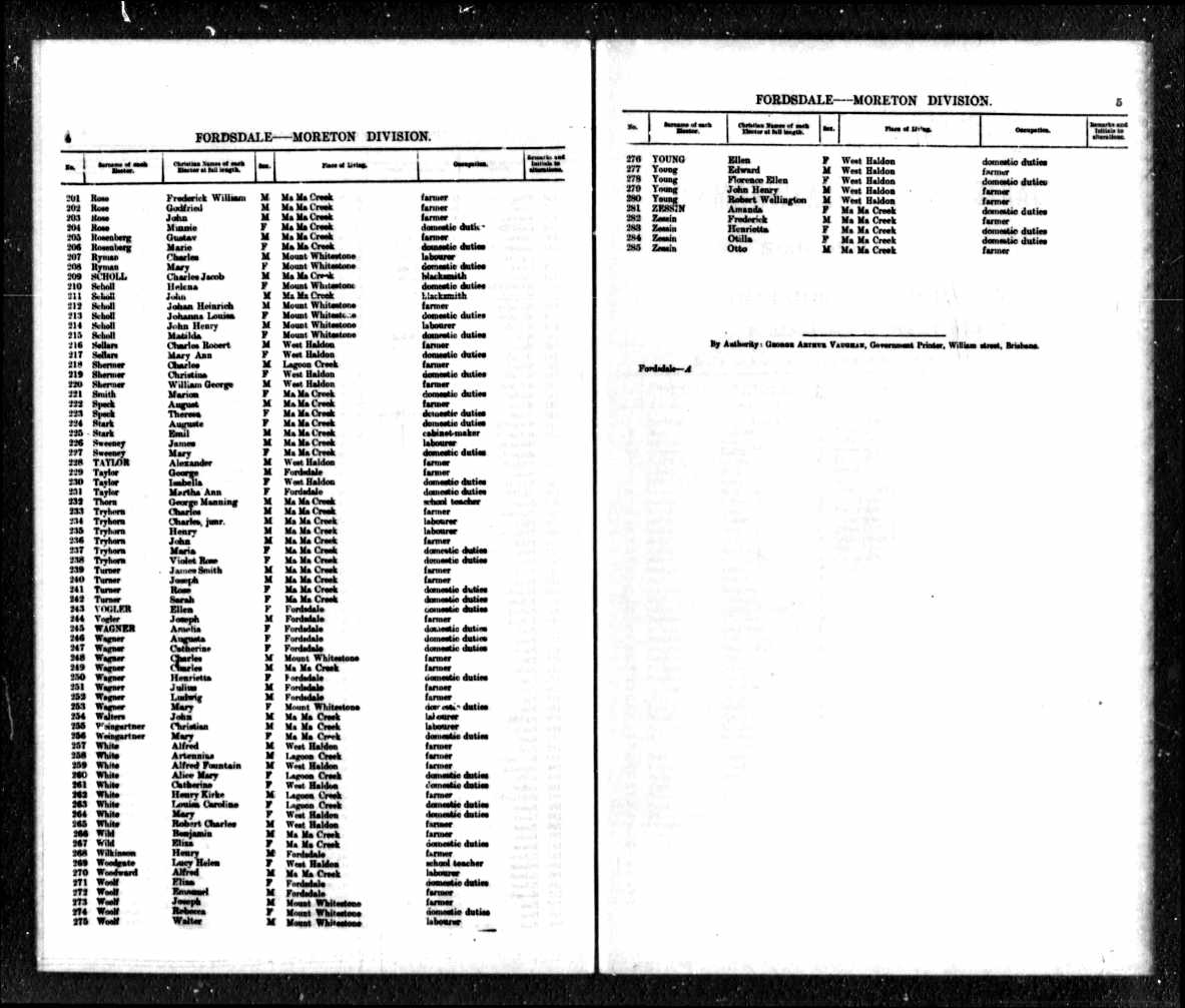 Frederick Zessin Male 1903 Queensland Moreton Fordsdale